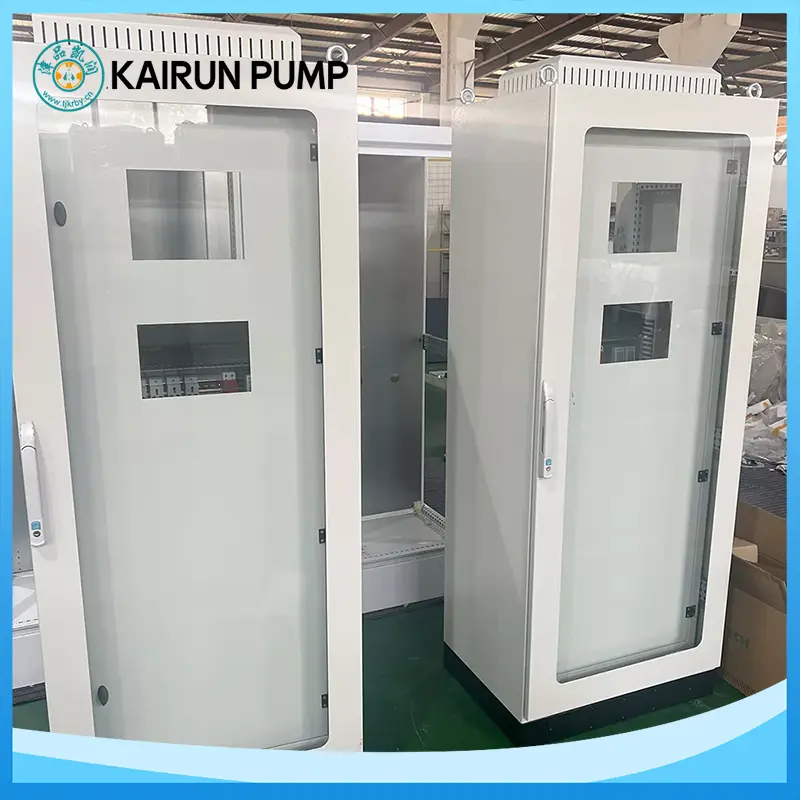 Нашият контролен шкаф използва висококачествени компоненти от международно известни марки, включително контактори и термични релета, съчетани с оптимизирана контролна верига. В допълнение към защитата от претоварване и загуба на фаза, той осигурява защита от късо съединение, прегряване на двигателя и защита от течове, както и интелигентен модул за диагностика на неизправности. Тези функции позволяват наблюдение в реално време, незабавни аларми и точно локализиране на повредата, минимизирайки прекъсванията и производствените загуби.